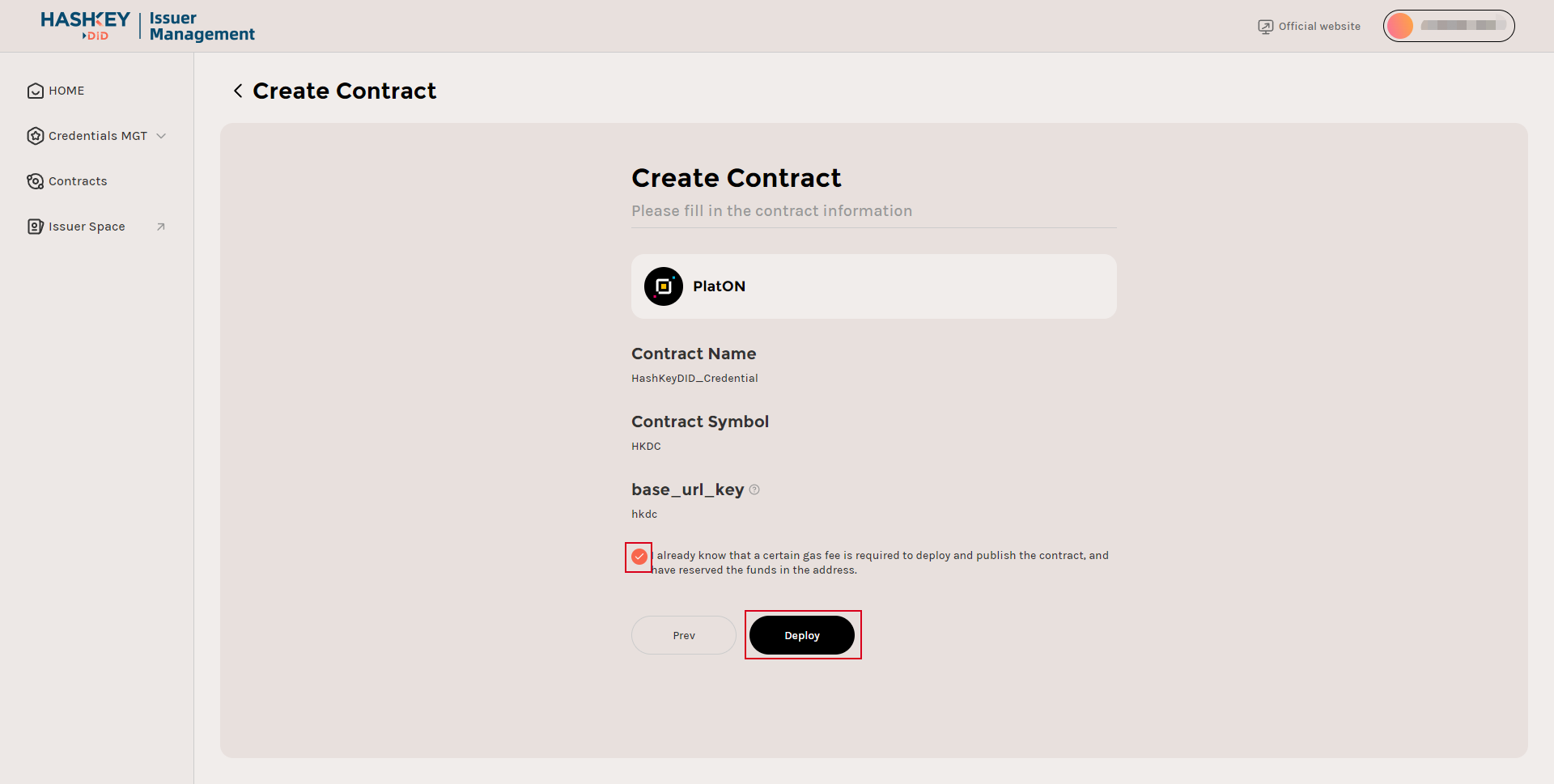 Please be reminded that a certain gas fee is required to deploy and publish the contract, so you need to reserve some funds in the address.