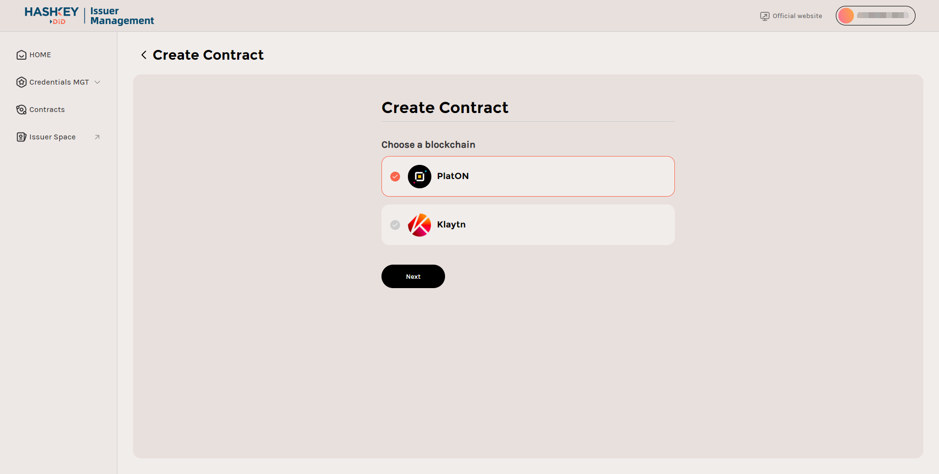 Select the blockchain you want to create a contract on, then click '**Next**'. If your current connected network is incorrect, you will be notified to switch to the corresponding network.